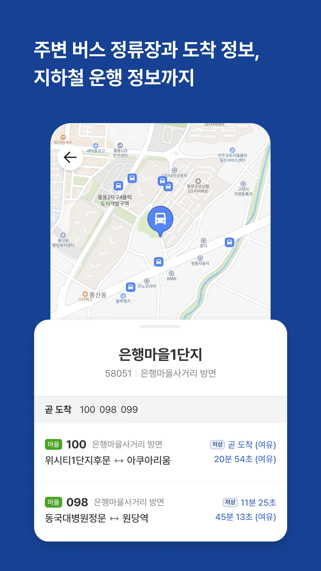 | 3. 출발/도착 설정 | 지도 또는 검색으로 위치 입력 | 실시간 버스 위치 표시됨 |